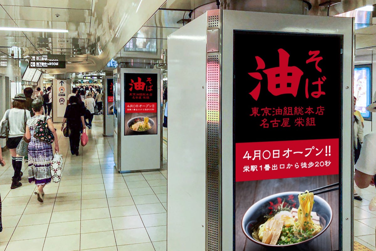 4月中下旬から、応援集客広告として名古屋栄駅近辺のOOH媒体にて約1ヶ月の掲載を予定しています。