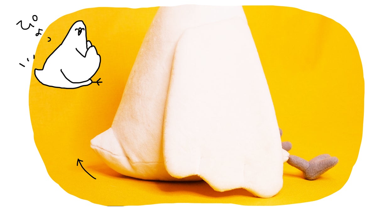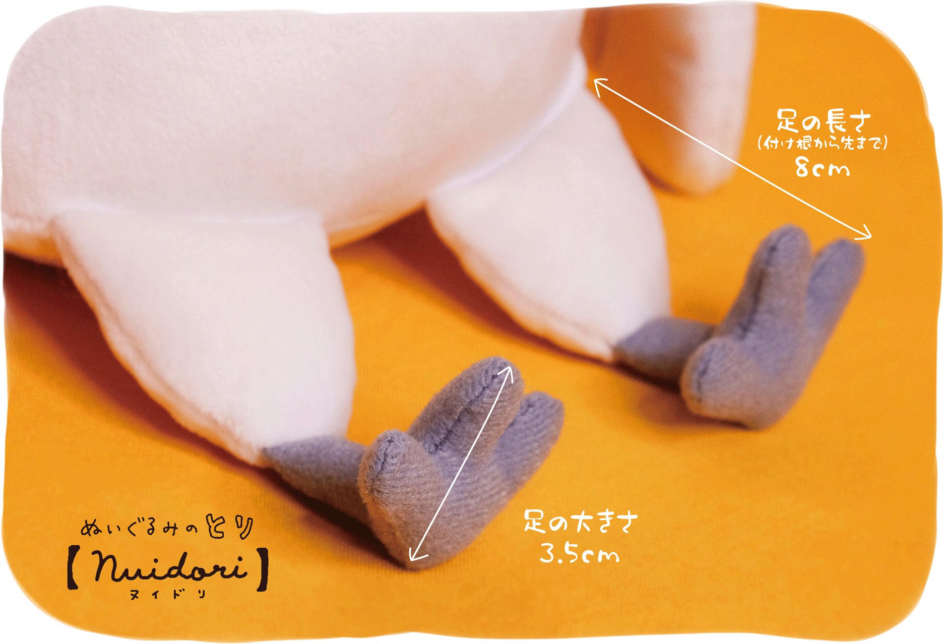 トリの羽の先と下半身にはビーズが入っており、座らせた時や持った時に、お手玉のような少しポテッとした重量を感じる作りとなっております。