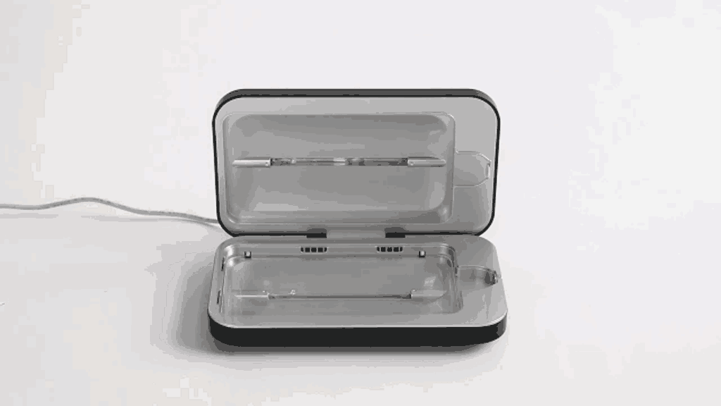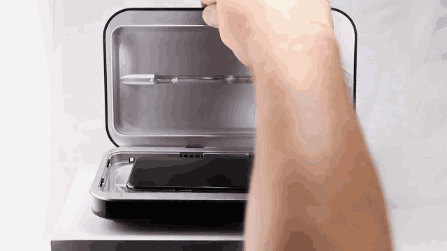 スマホを中に入れて、フタを閉じればあとは勝手に除菌ができます。
