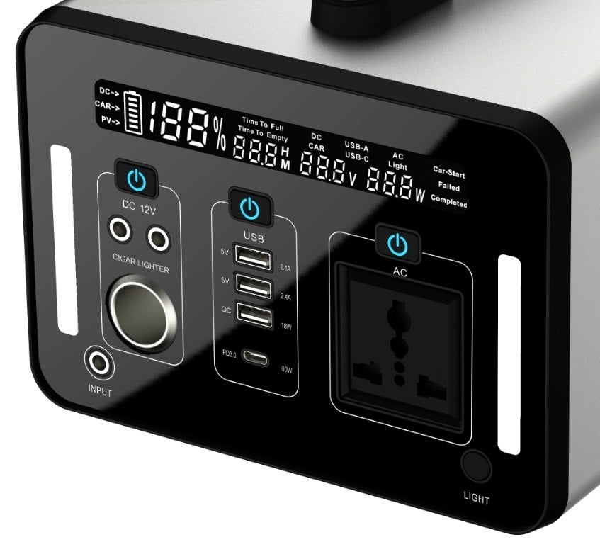 270000mAhの大容量。おおまかですがノートPC 11回以上、スマートフォン 60回以上、タブレット 14回以上、テレビ 11時間以上 の稼働が可能です。AC出力は1000W出力に対応している為、ご家庭内またはオフィスでお使いの定格消費電力1000W以下の電器商品を稼働できます。