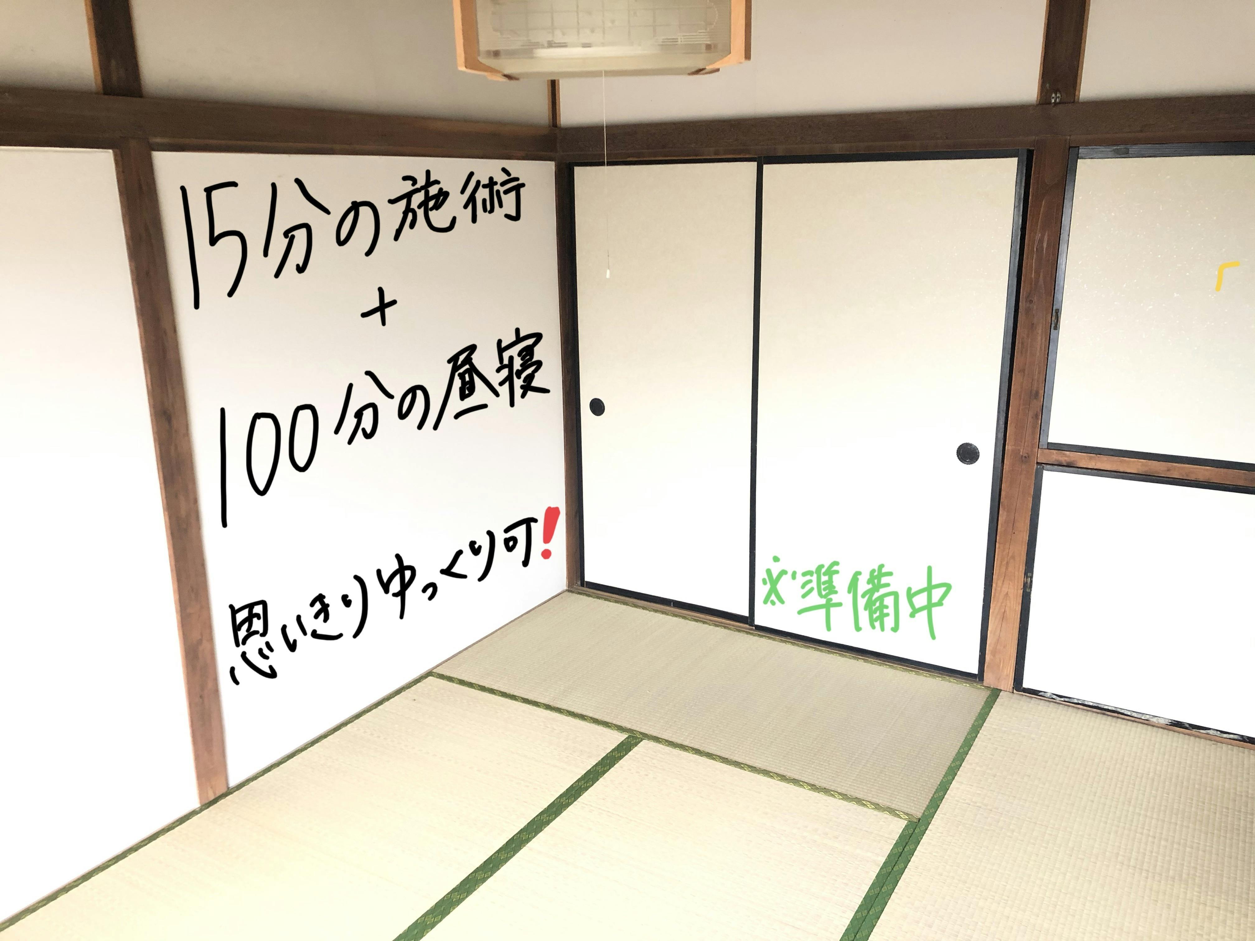 約15分程度の施術とそのままお昼寝できる時間をふんだんにとったリラクゼーションを提供します!