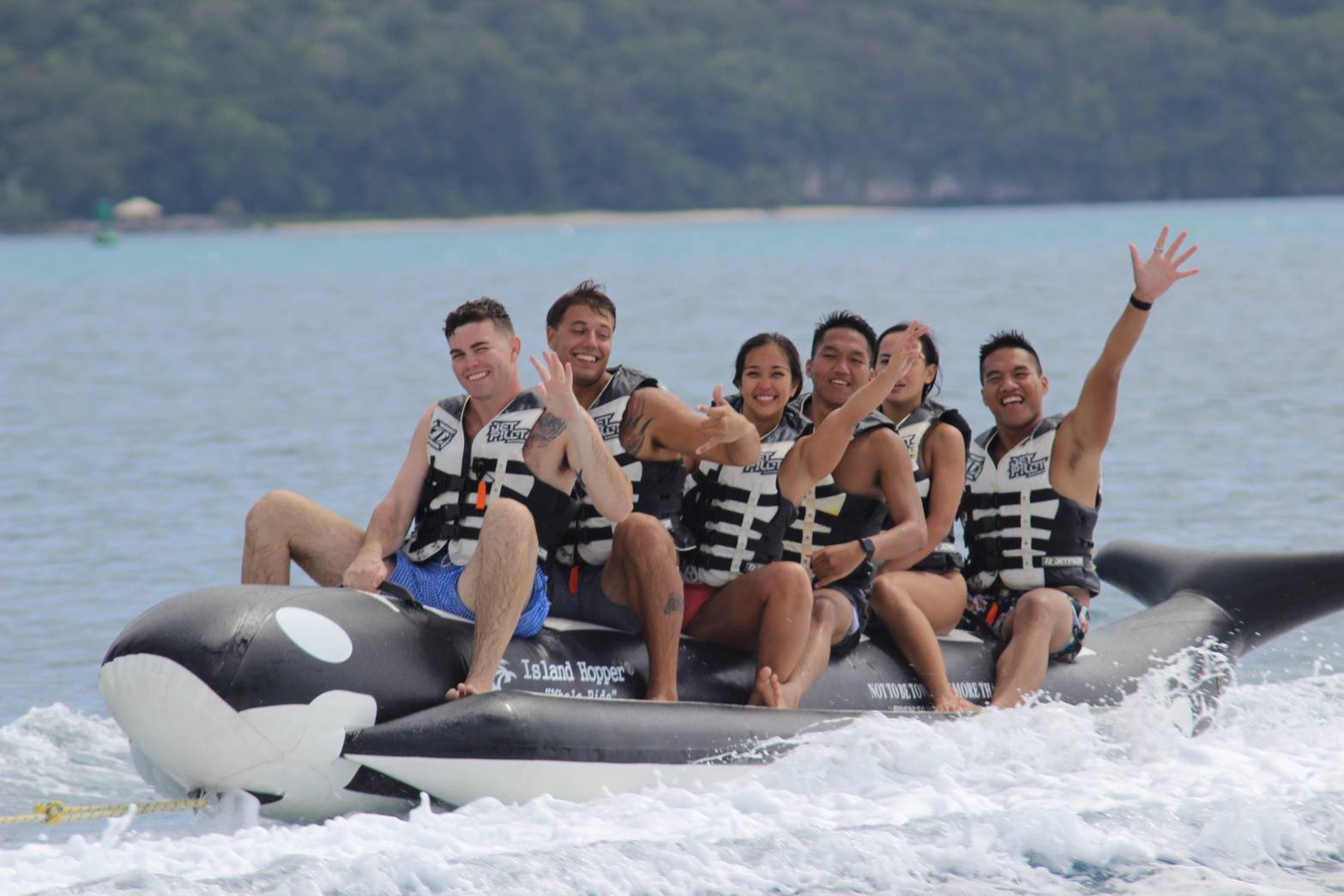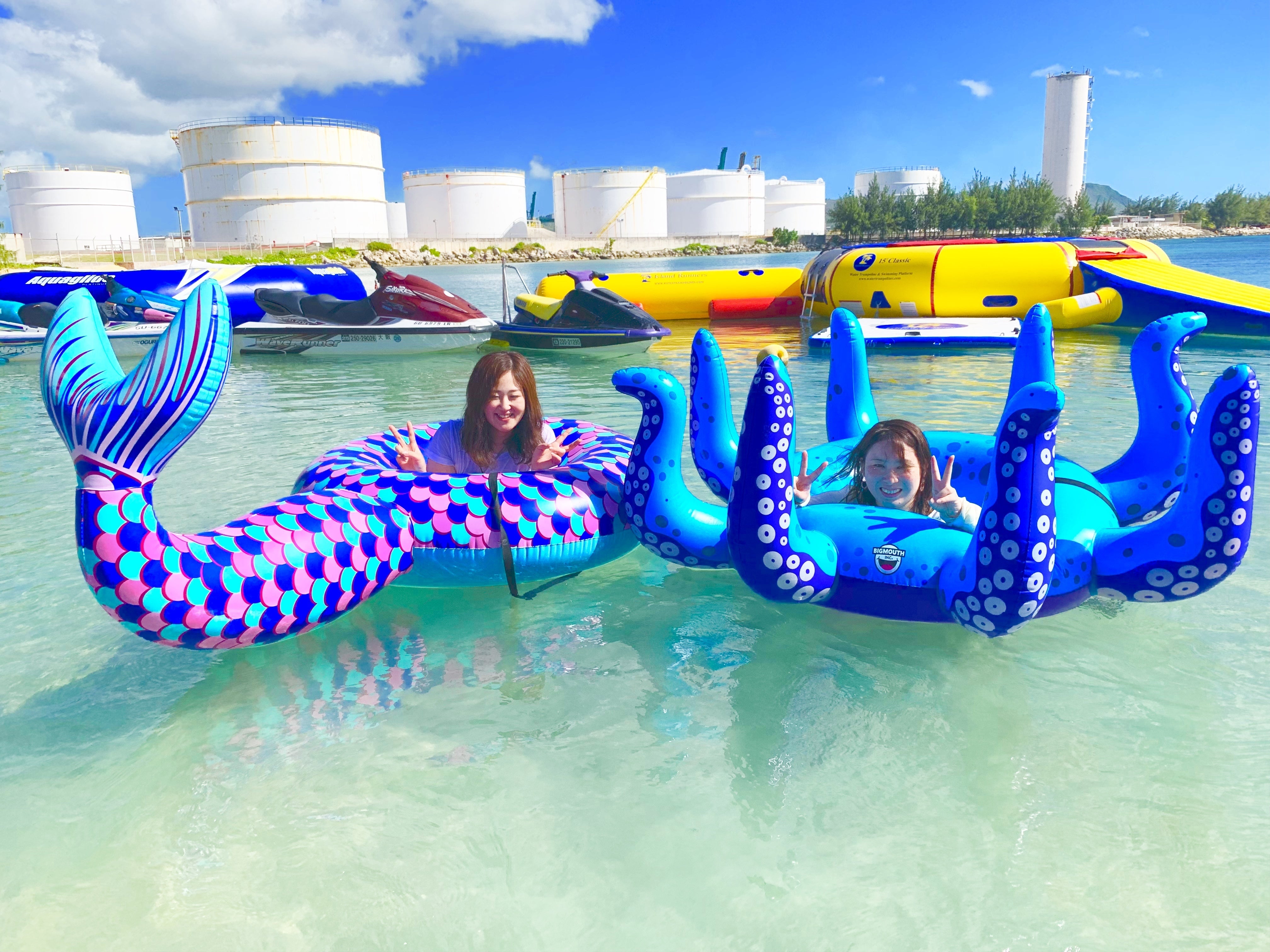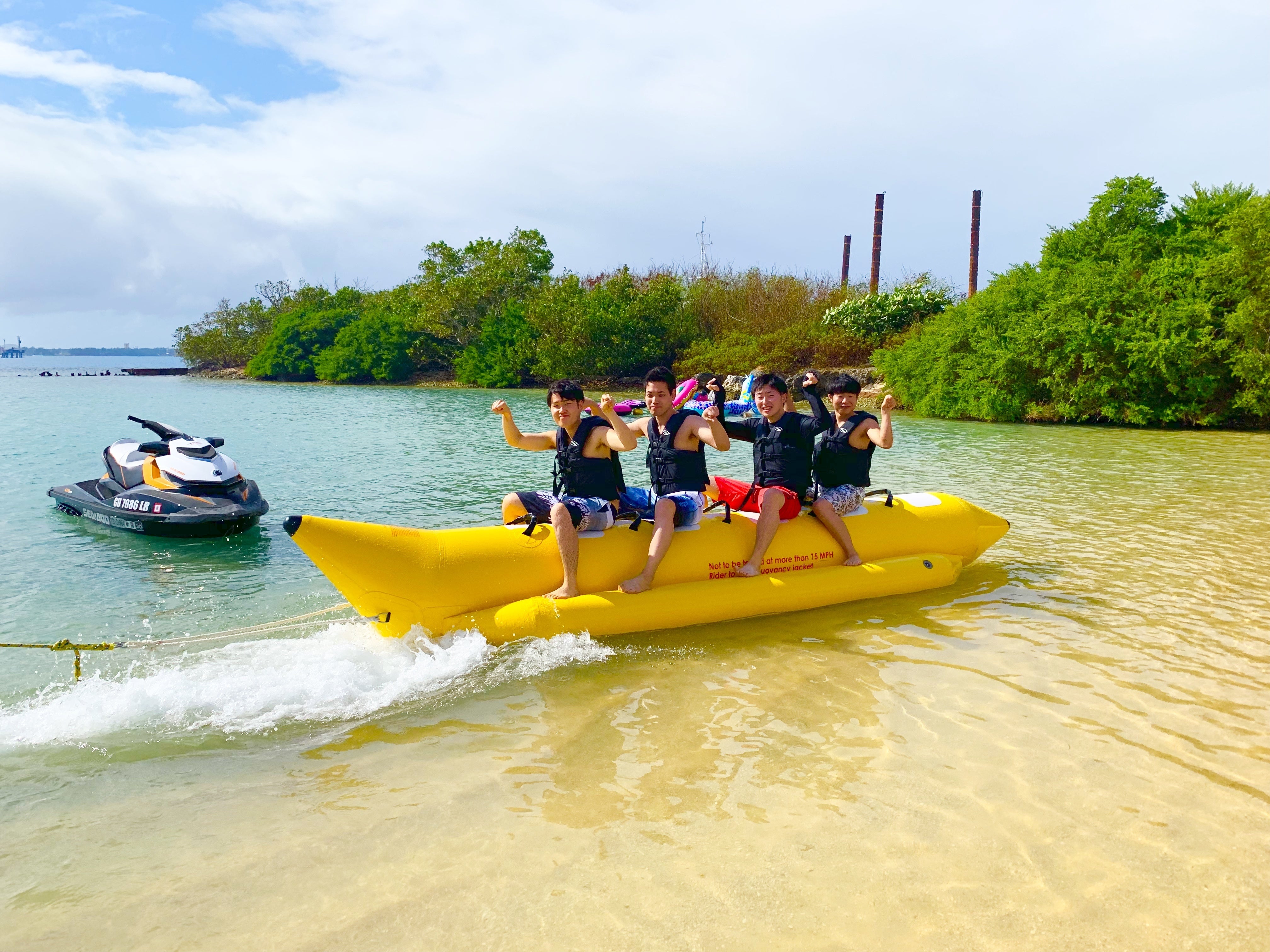 Island Beach Club Guam で使える、ホテルから当社ビーチまでの往復送迎+シュノーケルツアー+免許が無くても大丈夫!ジェットスキー40分レンタル+バナナボート+スクリーマー+カヤック+SUP+浮き輪+水上アスレチックを1名様分。