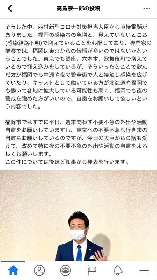 福岡市の高島市長からも「特に夜の不要不急の外出や活動の自粛」を強く要請されている段階であり、私たちも、もちろんスタッフもお客様の安全を最優先に考え「外出を控えて欲しい」という思いは変わりません。事態が収束したら、心置き無く楽しんで欲しいですし、何より安全な場所にいて欲しいです。HAPPYHILLスタッフ一同、同じ気持ちです。
