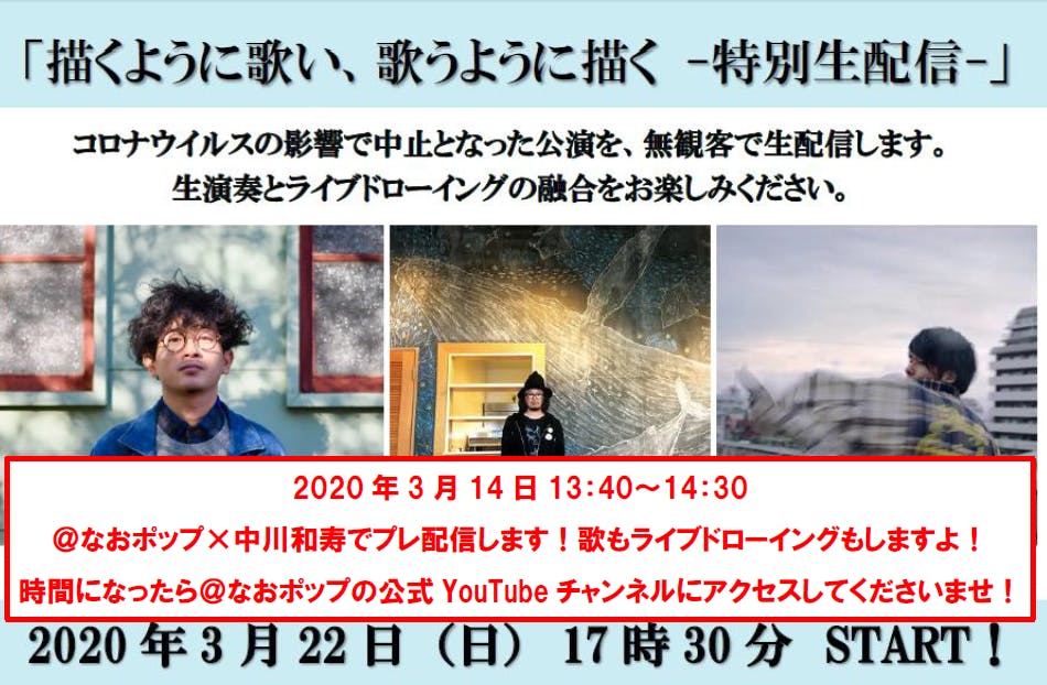 ↓3/14に@なおポップ×中川和寿で行ったプレ配信の模様はこちら↓