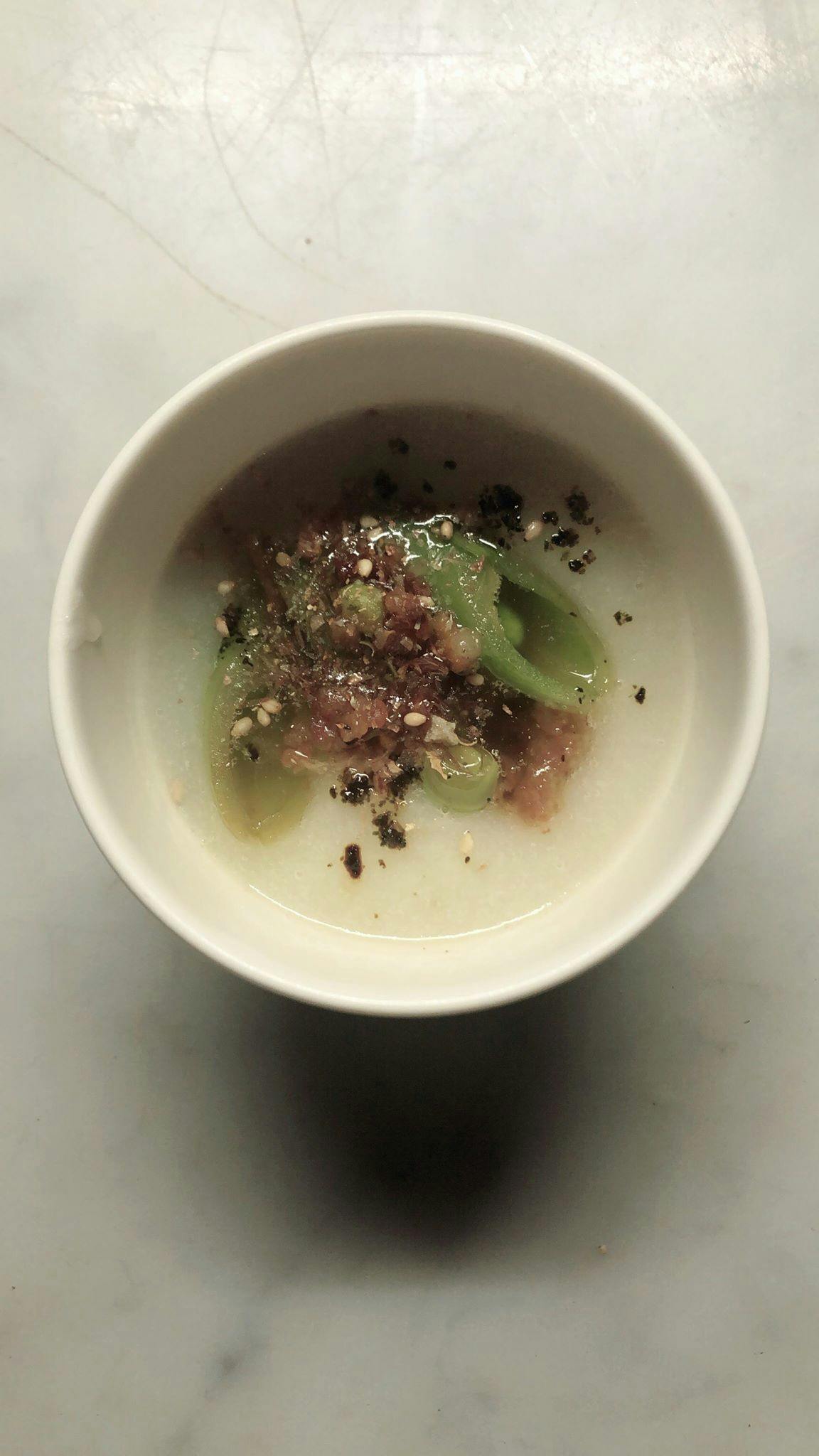 拘りの地鶏と昆布をベースに無農薬の香味野菜、ニンニク、ショウガ、鷹の爪、棗、朝鮮人参、ローズヒップ、魚醬、ポルチーニを加えてじっくりと8時間かけて仕上げました。