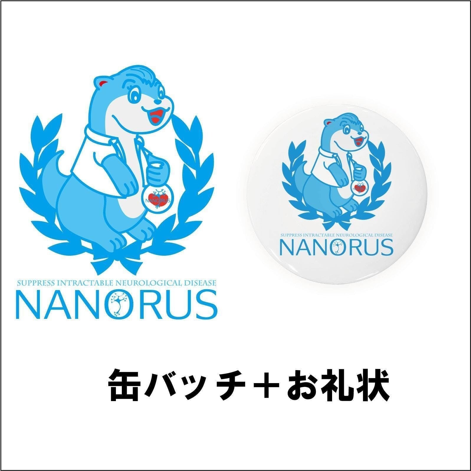 ※新たに設立した会社・ナノルスのロゴ・キャラクター入りの缶バッジです。