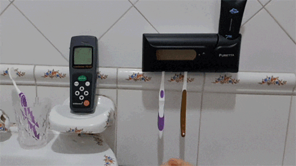 ▲同じ歯ブラシを「PURETTA」で殺菌すると…測定値が大幅に激減しました。