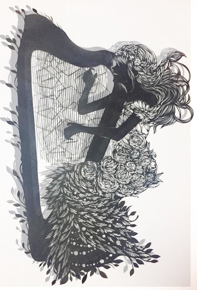 この作品をもう一度紙に反転させて印刷して、もう一度切ったら一番上の作品になります!