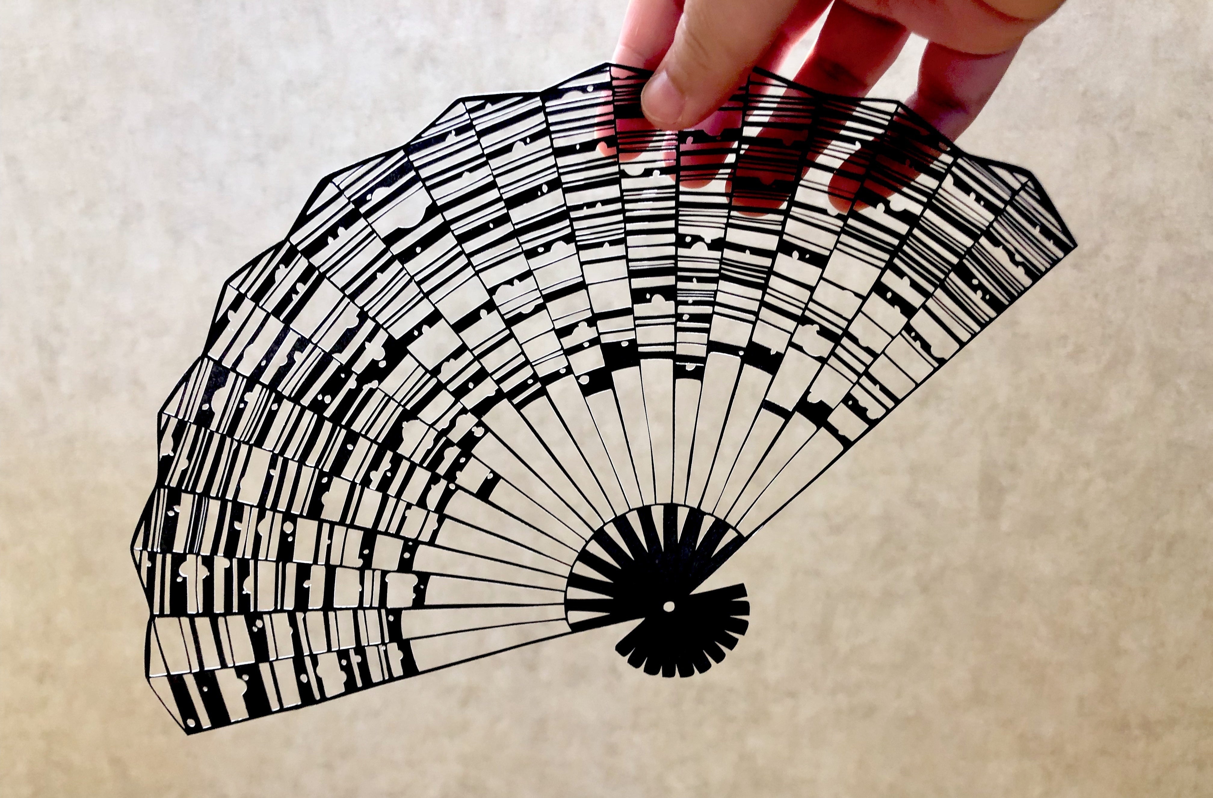 今日の紹介は和を意識した扇の切り絵です。和はシンプルゆえに難しいです…。