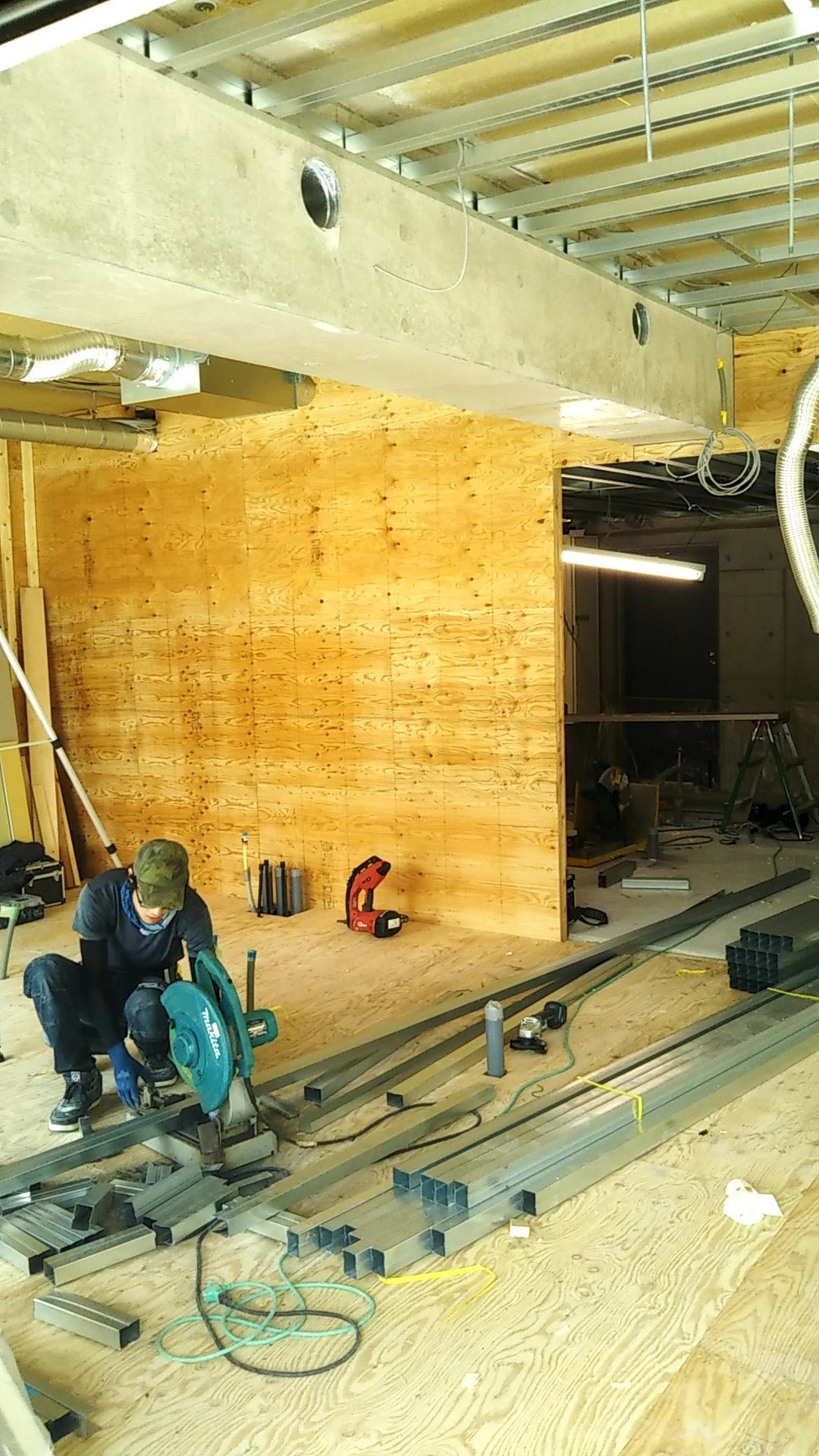 現場の中は軽鉄を切る機械が放つ熱も加わり相当な悪条件です。