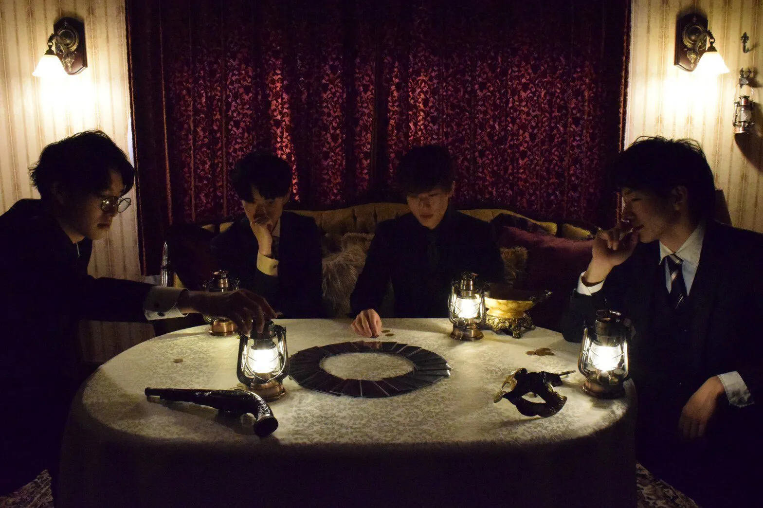 円の中から、カードを順番に引いていき人狼を引いてしまうと脱落。