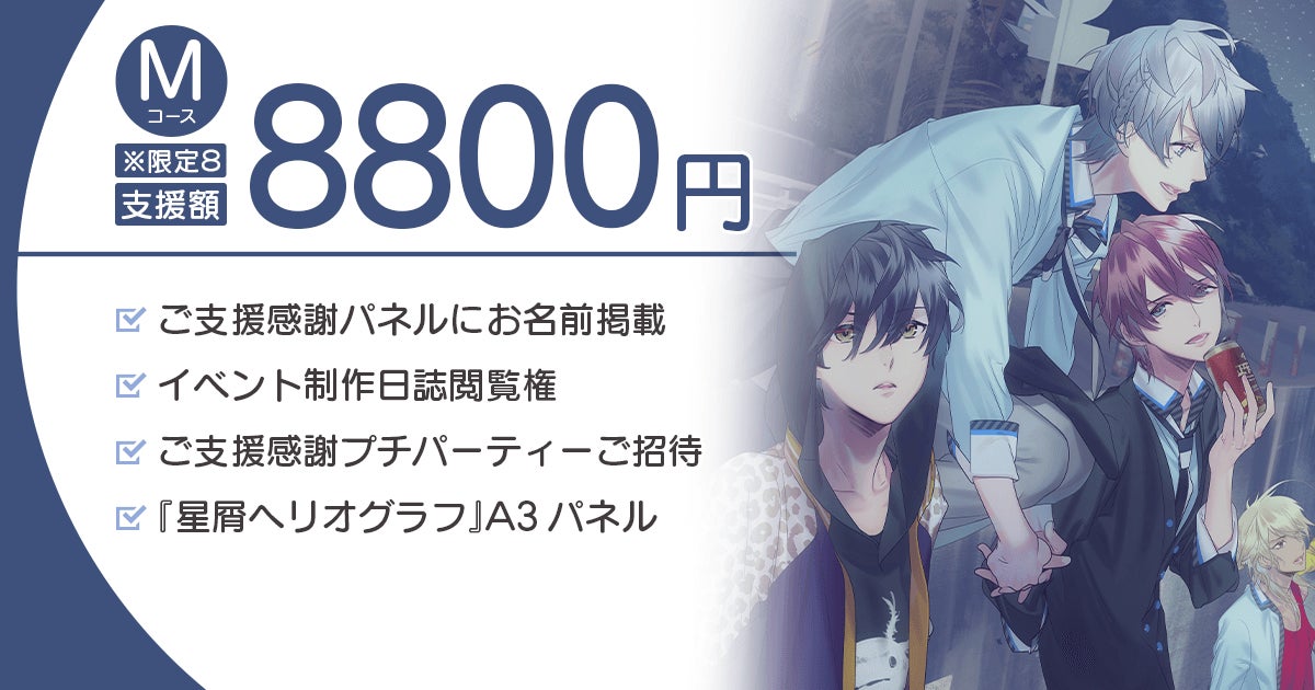 女性向けPCゲーム『星屑へリオグラフ(昴・波智編)』のリリースを記念して、登場キャラクターのスタンドパネルや、ゲーム内で使用されたスチルなどをパネルにして展示します。