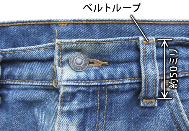 支援される前に、お手持ちのパンツのベルトループの縦幅サイズや、ボタンとループの距離を、定規や巻き尺などで計ってみてください。