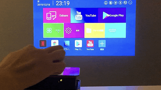 なんと、スイッチを押すとプロジェクターが