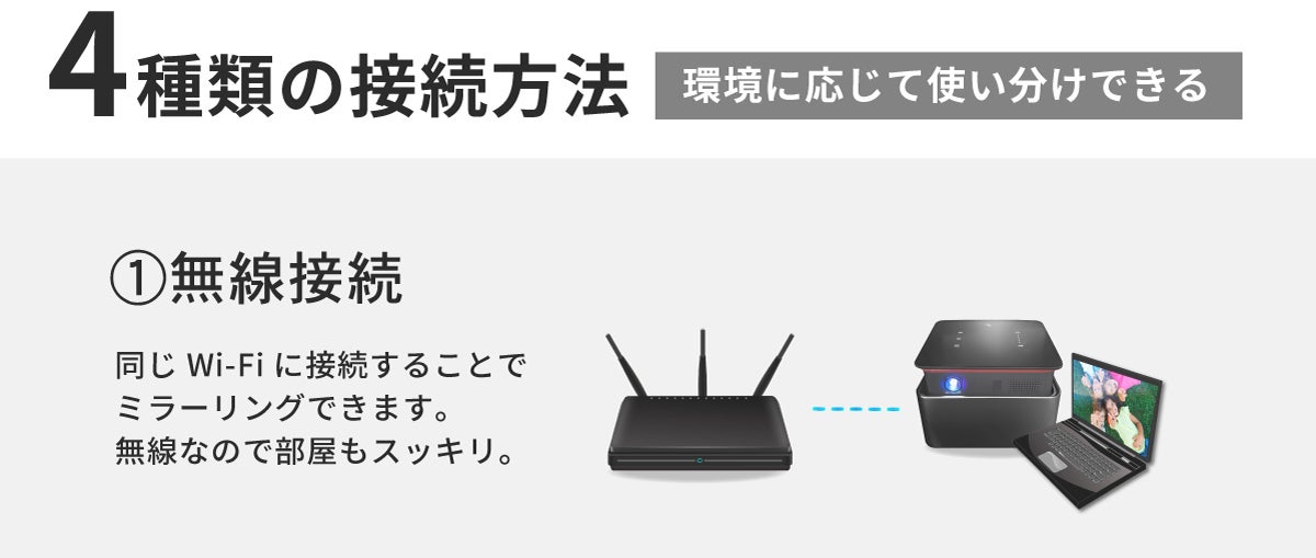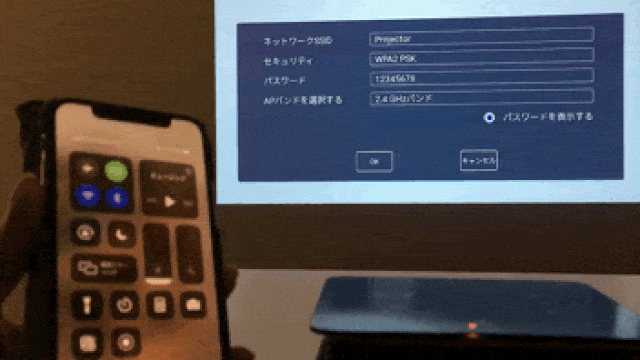 Wifi接続で、スマートフォン、PC、タブレットからの動画をスクリーンに投影できます。