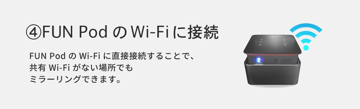 ▼FUN PodのWi-Fiに接続してミラーリングする様子