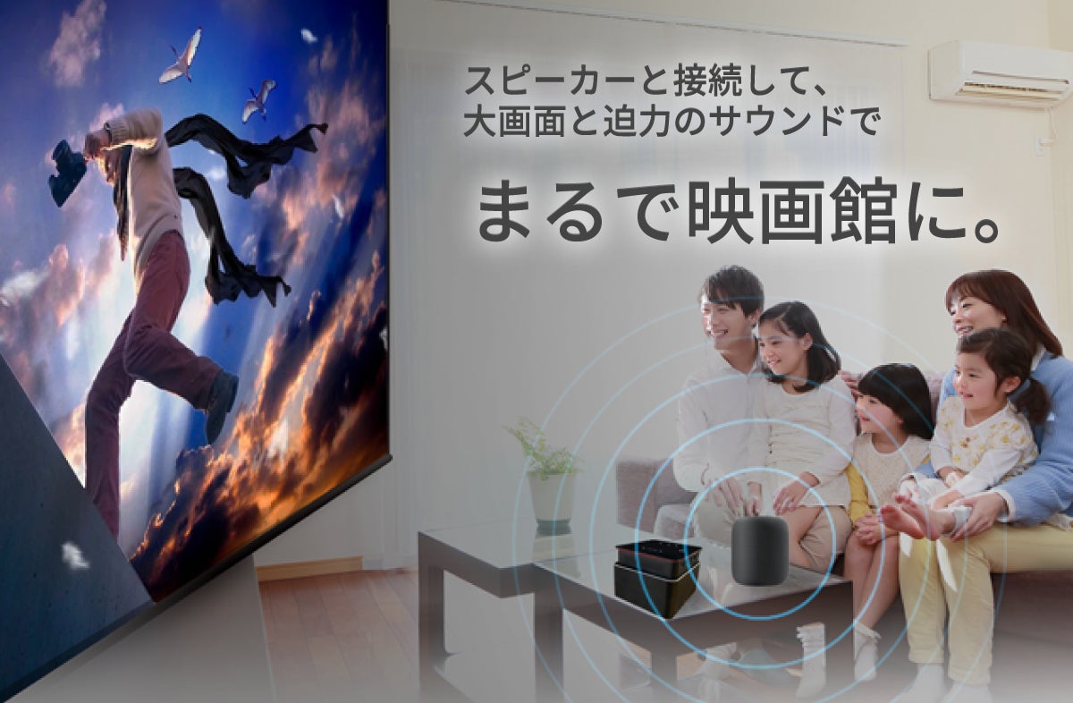 スピーカーと接続して、大画面と迫力のサウンドで、まるで映画館に。