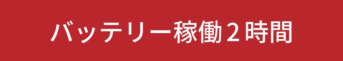バッテリー容量10000mAhの大容量で、2時間連続稼働ができます。