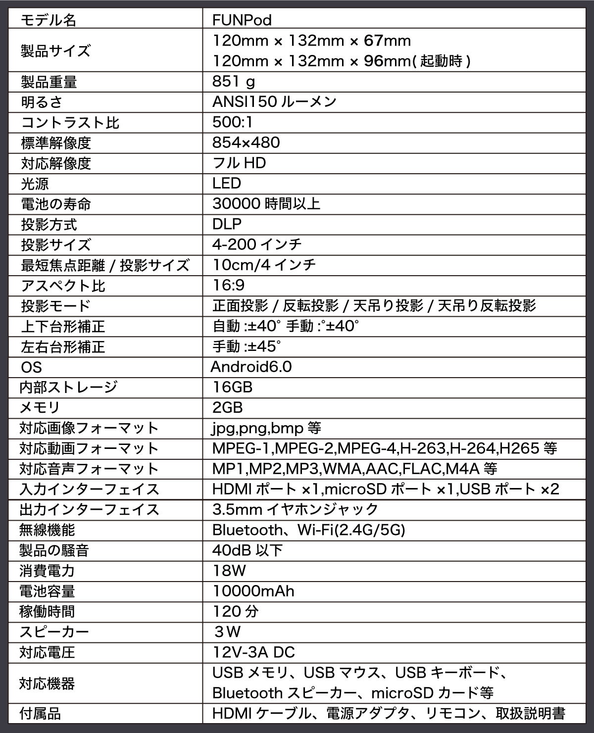 これによりFUN Podは、クリアで見やすい映像を投影します。