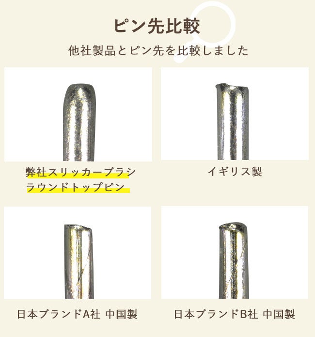 5. ピン先にバリ等の出張った形質がないため、ピンに絡んだ毛の除去を容易にします。