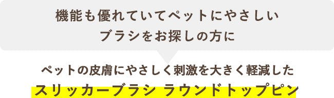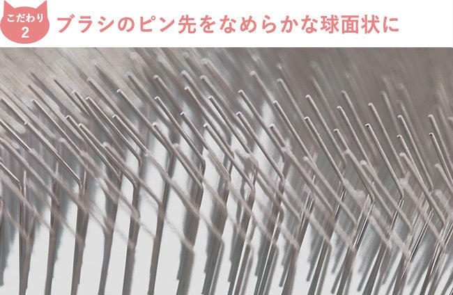 ラウンドトップピンは他のブラシでは真似できない、ペットへの負担が少ない、快適なブラッシングを可能にします。