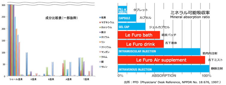 シェール温泉技術により成分も含有量もブースト化 / ミネラルはミスト状にすると吸収率がUP