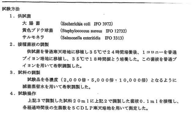 下図は当社のシェール温泉を用いたプール実験の結果です。2000倍希釈時における大腸菌などの一般生菌の殺菌データを時系列で示していますが、概ね30分以内に100%殺菌が達成しました。