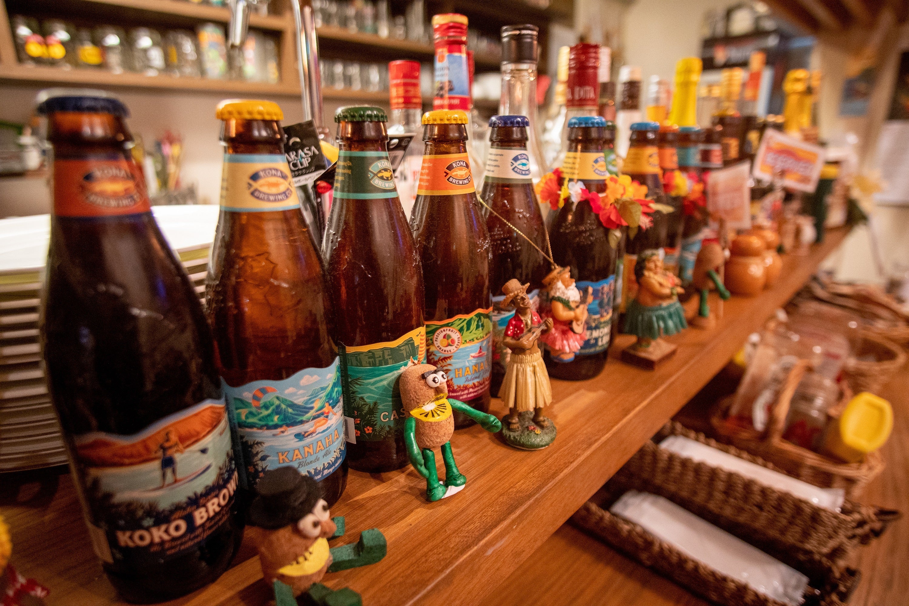 また、ハワイの代表的なKONAビールなども多数取り揃えており、日本にいながらハワイアンの雰囲気を味わっていただけるお店にしております。