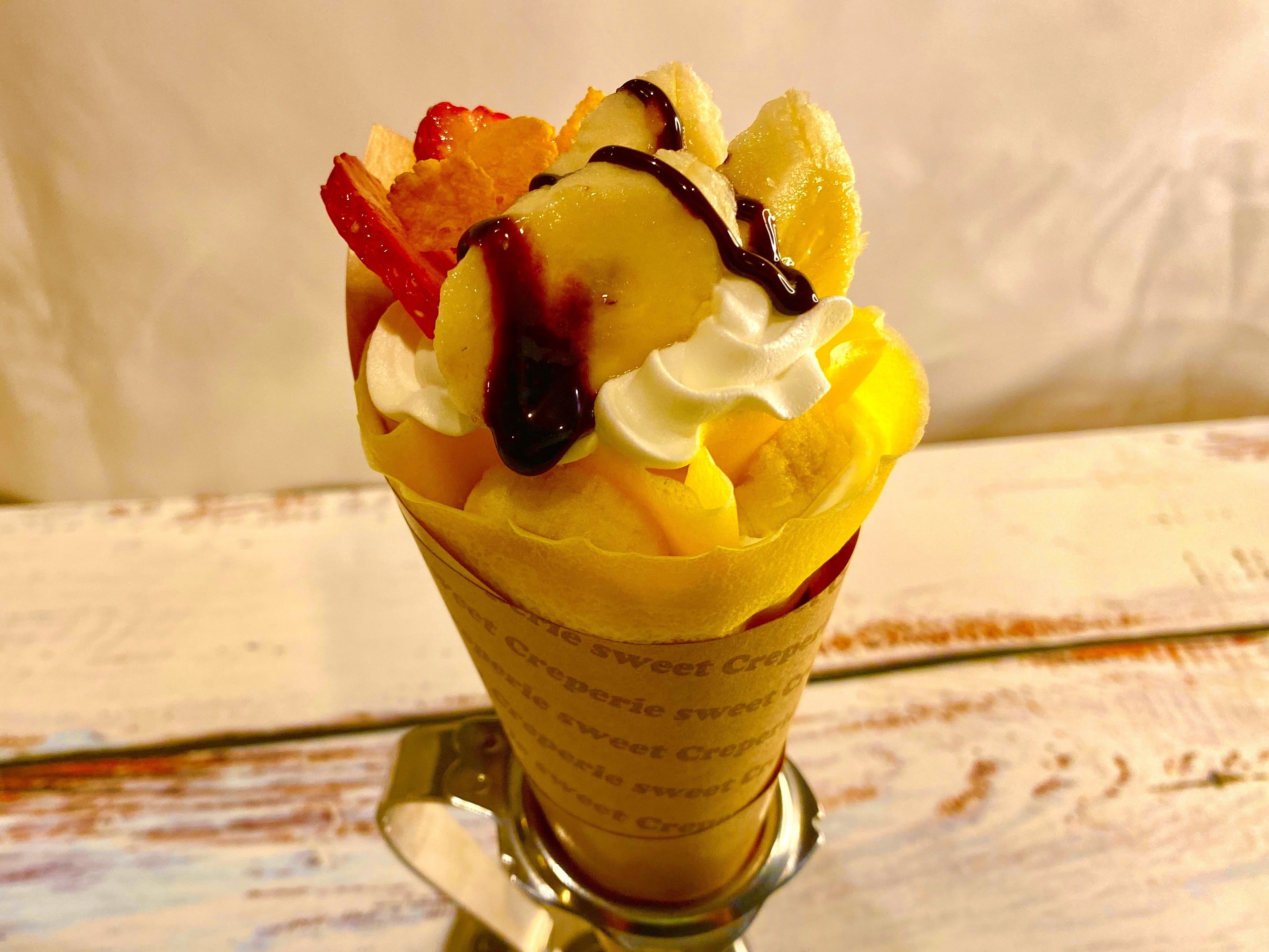 「なんで売れないのだろう」ということをとにかく考えて、試験的に始めたのが『お手頃クレープ』です。これは大きさ半分で、価格も200円〜といういわゆるハーフサイズクレープです。