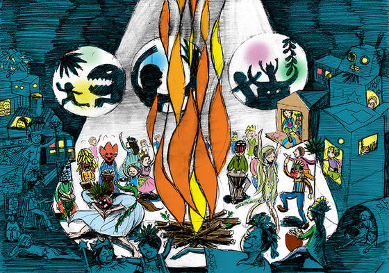 会場では光と影で昼間と夜を演出したり、こども達の動く姿でそのままアートになる影絵スペースも用意します。