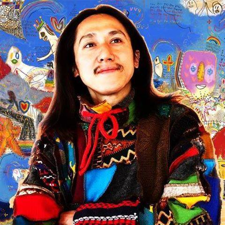 見た目からして充分に『怪しさ』が表現されているのだけど、 中を見てみたら、さらに飛び出すビックリ玉手箱! どんだけ面白いものばっかりかき集めて詰め込んでんだよ!といった人間である。 その活動も超多動な超多忙を極め、遊びつくしているような日々なのである。 もう。説明がいらないくらい。彼は体験型の天才。 今回ラッキーな事に、この傍島飛龍という最高のアトラクションを 天才合宿に持ち込む事が出来た! 実は第一回目に最初に口説いたのが彼だった。(振られた) 彼が代表をつとめる『超音楽的お遊び集団 じゃねんず』は 彼を中心に渦がどんどん巻きの勢いを増していき、 まわりの人間達はどんどんその渦に巻き込まれていくのだそうだ。 なんと私はまだ未体験である。だから、めっちゃ楽しみ!1番楽しみにしてるの私! この『天才を中心に渦を作って巻き込む』というのは 第一回目から意図してやっていたやり方で、前回はこどもの天才を混ぜ込んでいたのだが、今回はおとなになった天才を混ぜ込んでいます! 私が選んだ天才ヒリューと、そのヒリューが選んだ天才達が、待ってます! 私も自信を持って、お待ちしております。確信しかないですw by天才合宿発起人 あづみん談 ★傍嶋飛龍 Hiryu Sobajima ★ 1976年1月16日生まれ 子供の時は超多動症の問題児! 大人になったら画家であり、万華鏡作家であり、超音楽的お遊び集団じゃねんず団長であり、廃材エコヴィレッジゆるゆる村長と遊びに本気の多動症マルチアーティスト。 ◆アート 多摩美術大学絵画科大学院卒業 独特な感性で描く絵画や立体作品などを制作。 第1回池田満寿夫記念芸術賞 大賞、利根山光人芸術賞 大賞、などなど多くのコンクールで受賞。 東京アートフェアやART OSAKAなどのアートフェアにも参加。 NHKハート展、テレビ東京「トコトンハテナ」で絵の先生役として出演。2012BS日テレ「森人MORIJIN」出演、個展やグループ展は多数開催。●Hiryu Sobajima artworks collection ◆万華鏡 万華鏡制作を独学で始め、2007年から、銀座の万華鏡ギャラリーの老舗、ギャルリーヴィヴァンの専属作家として全国の丸善での企画展示、渋谷Bunkamuraギャラリーでの展覧会などに参加。 2009年江戸川競艇ミュージアムに万華鏡と絵画作品を常設展示中。 2011年NHKカルチャー 横浜ランドマーク教室にてワークショップを開催。 ●龍夢万華鏡工房 ◆超音楽的お遊び集団 じゃねんず 上手い下手関係なく、老若男女誰でも楽しめる音楽遊びを行っている音楽集団。2004年から本格活動して、夏フェス、福祉施設、学校、病院、デイサービス、プレイパークなどでリズムワークショップを行っている。 ●超音楽的お遊び集団 じゃねんず ◆廃材エコヴィレッジゆるゆる 藤野の隠里 綱子で廃工場を廃材でアートでエコなエコヴィレッジづくり!「地域通貨ゆーる」、狩猟採集イベント「ビストロ山」、コミュニティー小商いイベント「ゆるゆる横丁」などなどイベントを開催中。●廃材エコヴィレッジゆるゆる