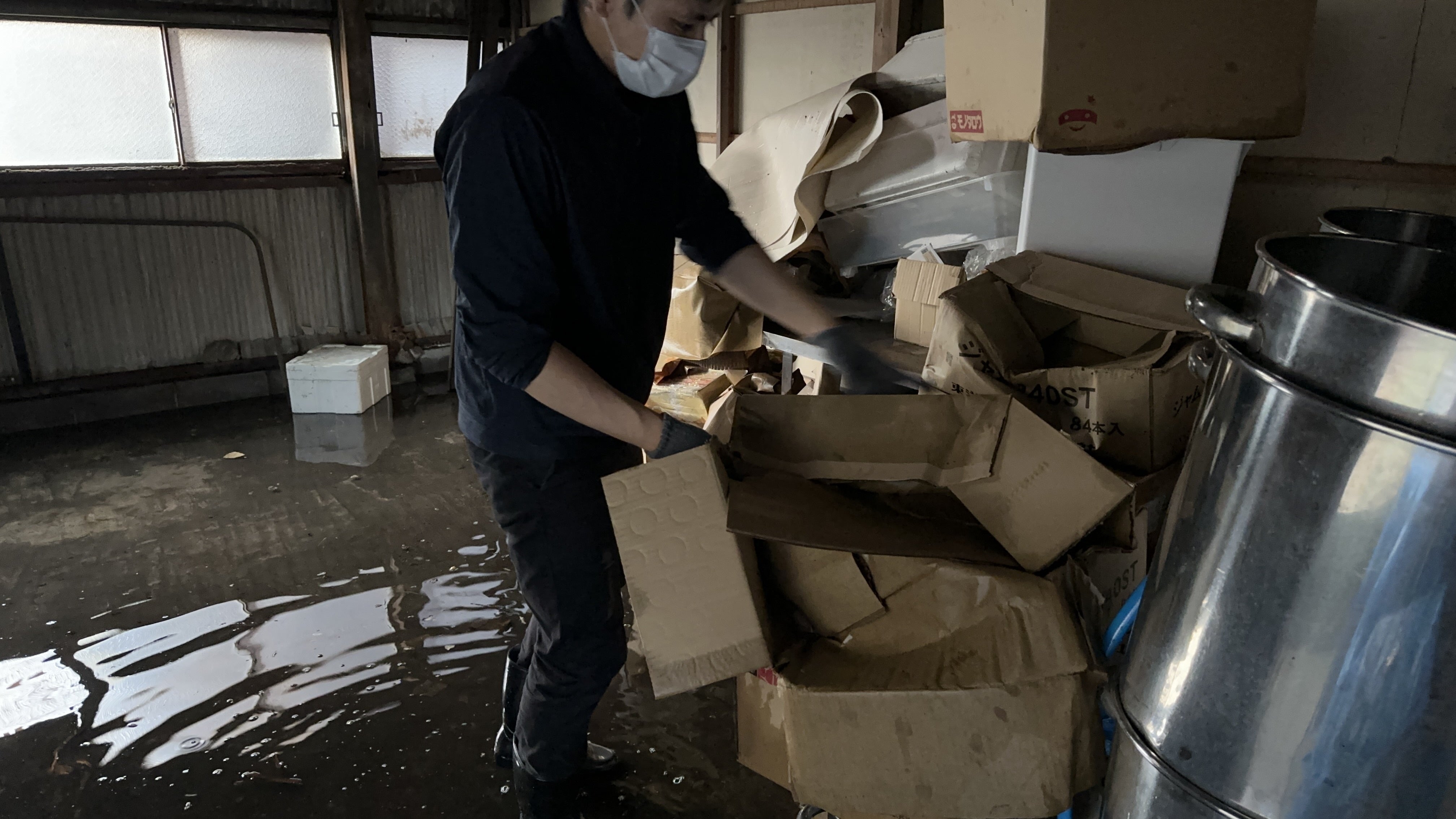 この際に、材料や資材の保管庫である工場兼倉庫が浸水したことにより、保管していた材料及び資材の全ての処分を余儀なくされました。