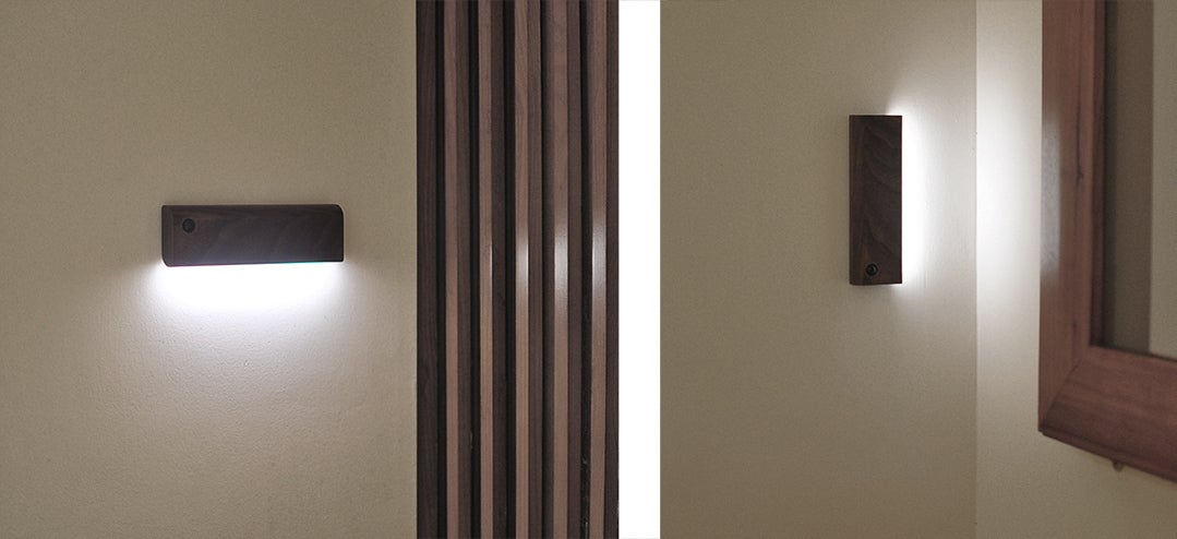 人の動きに反応して点灯するモーションライトはインテリアとしてよく使用されてますが、市場に出回っている既存の多くは白か黒のプラスチック製、かつ丸型もしくは四角型のものでした。