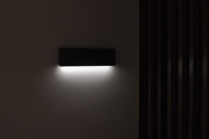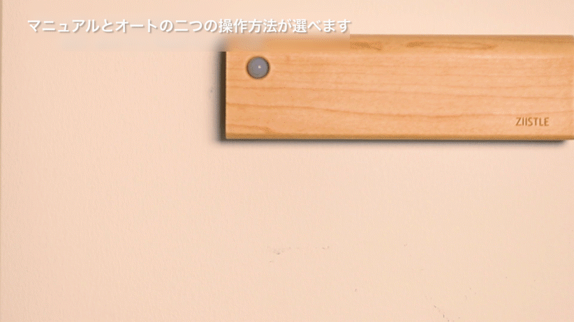 モーション自動センサーはオフで、ボタンのみで操作します。左サイドにあるボタンを押すと点灯し、再度押すと消灯します。