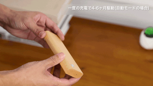 5m120°以内の人の動きを感知してモーション自動センサーが反応し、ライトが点灯します。20秒間なにも動きがない場合は自動で消灯します。また左サイドにあるボタンを押してライトを点灯させたあと、20秒間なにも動きがない場合にも自動で消灯します。