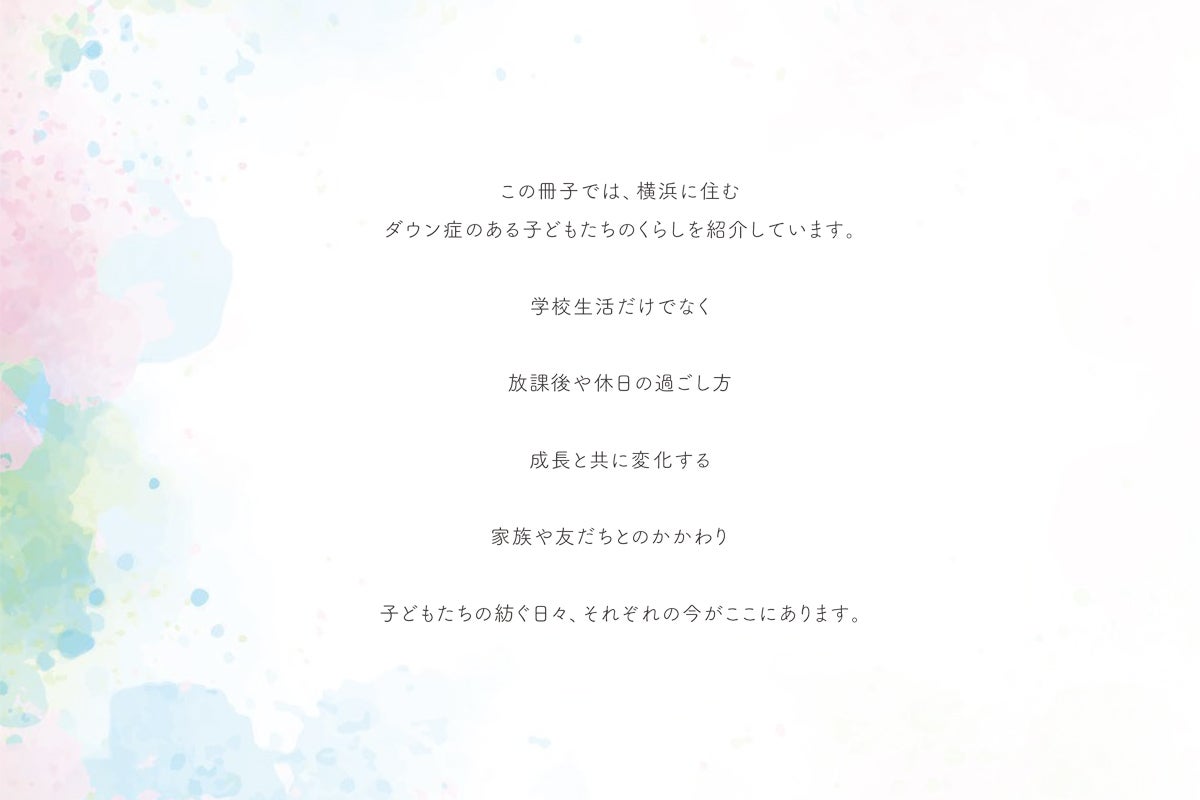 また、冊子が多くの学校に備えられることで、在籍する子どもたちや先生方に手に取って頂きダウン症のある子どもたちもありふれた日常生活を送っているのだと知っていただけることを心から願っています。
