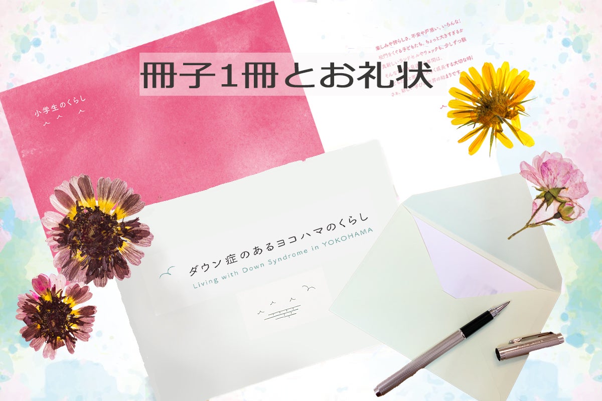🍀冊子「ダウン症のあるヨコハマのくらし」5冊と団体からのお礼状をお送りいたします。また、ご希望によりウェブ上「ダウン症のあるヨコハマのくらし」特設サイトのスペシャルサポータ―欄にご芳名記載と 団体よりお礼状をお送りします。