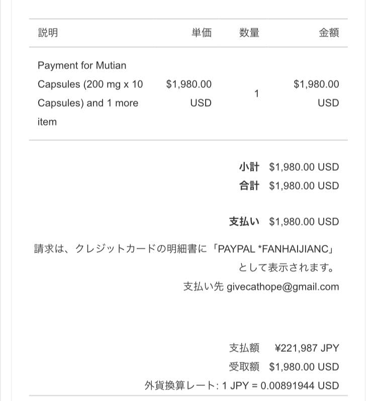 購入しました。合計金額$1.980です