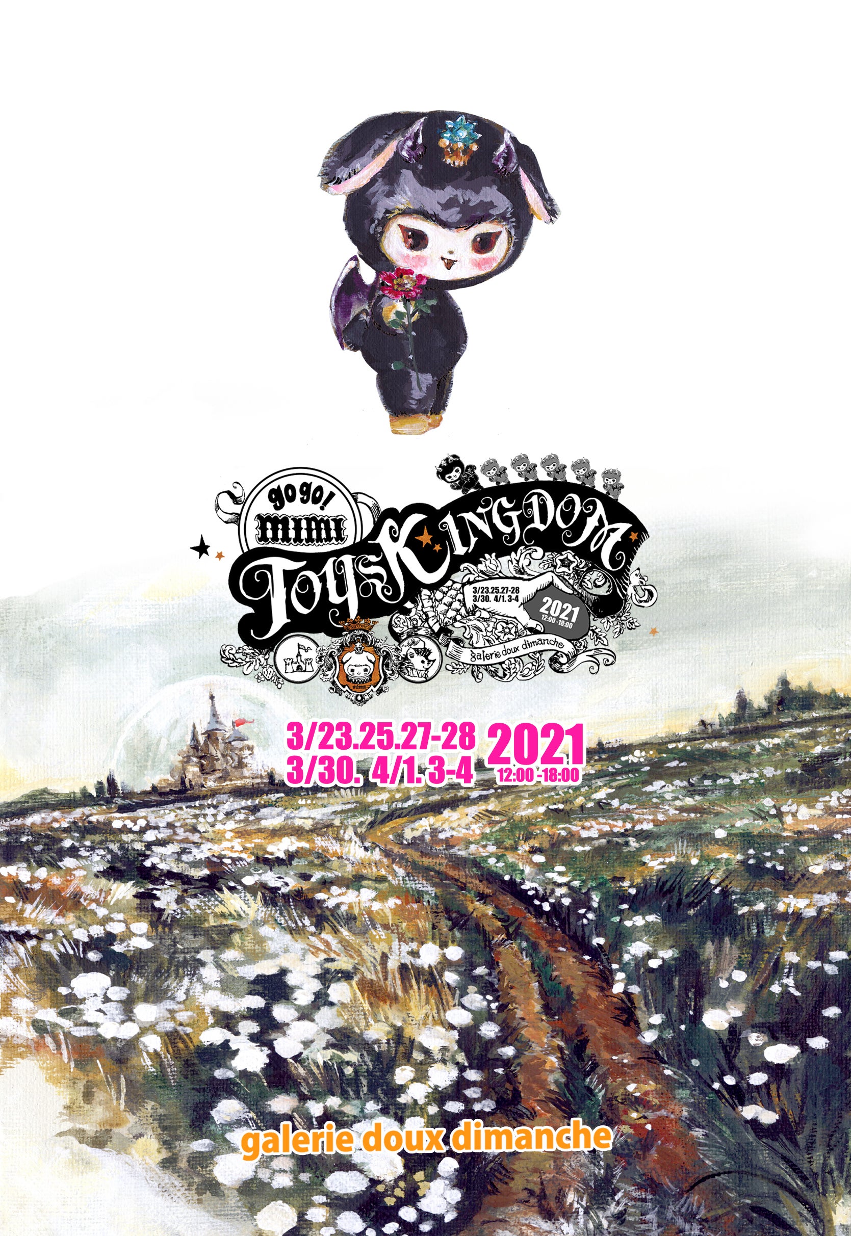 2021/02/14 19:35こんにちはeri/かくらいです。ご無沙汰しております。梅の花もちらほらとほころびてきて少し春めいてきましたね!みなさまお変わりないですか?昨日は東北地方を中心に大きな地震がありましたが、ご無事でしたでしょうか?数日気をつけてすごしましょうね。さて、昨年延期になりました展覧会『ミミ、おもちゃの王国へ!』開催のお知らせです。◆ EXPOSITION『ミミ、おもちゃの王国へ!』◆場所:ギャラリー・ドゥー・ディマンシュ・期間:2020年3月23日(火)~4月4日(日)(毎週 火・木・土日 四日間×二週間)・営業時間:12:00~18:00 定休日:毎週月曜このお知らせができて、とてもうれしいです!クラウドファンディングにご支援いただいたみなさまのおかげで開催できる、感謝の気持ちでいっぱいの展覧会です。わたしもこの一年コロナ禍を受け、考え方も前とは少し変わりました。考え方が変わると絵も変わる。絵描きなのでちょっと絵の話を聞いていただこうかと思うのですが、わたしが絵を描くにあたって心がけていることは、「絵でしか表現できないことをしよう」ということで、自分が好きな「よき!」と思う線を引くことに生命をかけたりしています。線はこの世界と自分の境界で、生きていくための問いかけで手段だったりします。理想にしてるのは、「ラフでゆるやかだけど決まっているめちゃかっこいい線」なのですが、どうも時々目指している線とは違う線を引いてしまうことがあります。ことばでうまく表現することが難しいのですが、なんていうか「できる技術を総動員&全部盛りしました!オレ!!がんばりました!!!」といった感じの、ちょっと肩に力が入りすぎな、コレやらんでいいことまでやってませんかね…という線で描かれた絵。イラストレーターのお仕事として、クライアントに技術を求められる絵を描いている時はそれでよいのですが、自分自身好きに描いていい時にそういう絵を描いている時は、たいてい心の中で言い訳してます。「だってこう描いた方が受けいれられるし…」って。そういう絵って描いた直後は好きでも、後から見るとあまり好きではなかったりします。わたしは自分の絵をもっと好きになりたいし、理想の線を自由に描けるようになりたい。大事な線を活かすためにはもっと考えを深め、なにかを捨て磨き抜くことが必要。ではなにを捨ててなにを選ぶ?だれのために?なんのために?この一年は、先が見えないとは言いつつも、時間的にも経済的にも言い訳無用の制約が少ない幸福な状況でもあったので、自問自答を繰り返しつつ理想の線を模索し描き続けてきました。で、結果。臆病で優柔不断で強欲なわたしが一本の線を選んで引くということは、けっこう勇気がいる難易度び高い作業で、本当に引きたい線を引くことにずっと自信がなく、無視や批判が怖くて挑戦をさぼってきたけれど、この一年の間にたくさんの恩恵を受け、もっと世界を信用して投げやりにならず誠意をもって伝えていく努力をしたいし、していかなければな!というように考えが変わりました。これはわたし的に大きく前進したことです。みなさんのおかげです。ミミなんて、生きていく上で必要ではないものの代表選手のようなもの(今、心の中のミミたちがブーイングをしています)ですが、そんなミミに目を掛けてくれてこのような機会を与えていただき、みなさまありがとう。一年も延期になったのだから準備万端でしょ、と思いきや、意外とできてなくて今バタバタしているところですが、自分の描きたかった線で作りたかった世界をご覧いただけるようがんばります。そうそう!会場にはオリジナルカスタマイズソフビミミ&ワルミミたちも並ぶ予定ですのでおたのしみに!(新しくエアブラシを導入したので、ふわっとしたグラデ塗りのミミもご覧いただけるかも?)生の描いた絵をご覧いただきたいですが、もしも国からの要請などで実店舗を休業せざる終えない場合はギャラリーが休業になることも考えられます。その場合はオンラインでの開催となります。詳細はギャラリーやわたしのtwitterでお知らせさせていただきます。そうではみなさま、どうかどうか元気でお会いできますように!お体には十分気をつけて、お過ごしください。Om Shanti Shanti Shanti♡(←最近ヨガで覚えたお気に入りのことば)Many, many dear regards and a big hug to you!!eri/かくらいみさいる もっと見る