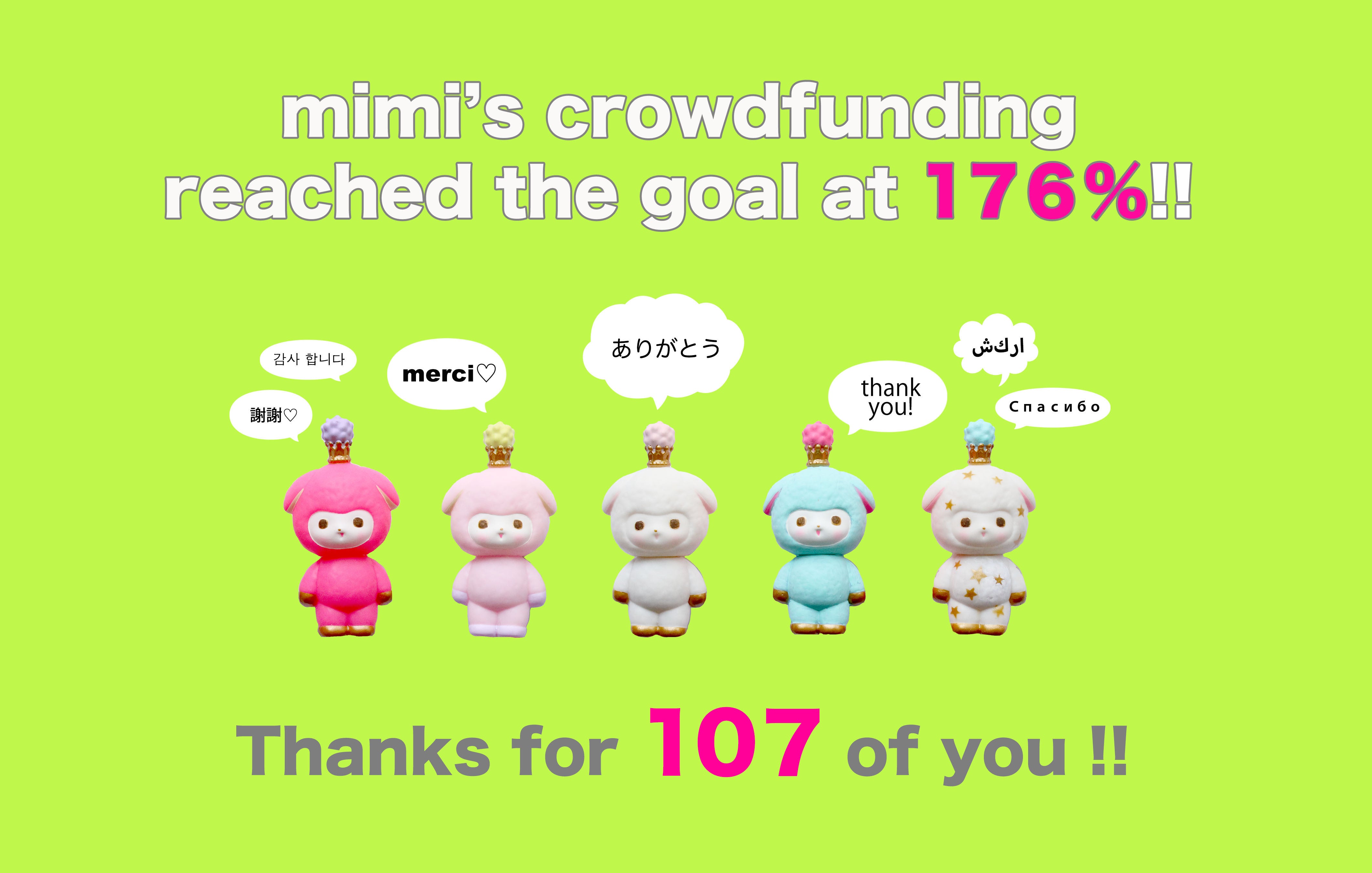 クラウドファンディング 【展覧会『ミミ、おもちゃの王国へ!』を成功させたい!】は、107人の方に支えられ、 176%達成でゴールいたしました! たいへん多くの方にご支援をいただき、感謝の気持ちでいっぱいです。ほんとうにありがとうございました。………………………………………………………………………………本来ならば、ここで感謝のご挨拶と今後の活動についてご報告させていただくところなのですが、ただいま月末締めの仕事が立て込んでおりまして、少しお時間いただけますでしょうか。申し訳ありません。心優しい皆様の益々の健康と幸せを、心から願っております。どうぞよろしくお願いします。eri/かくらいみさいる