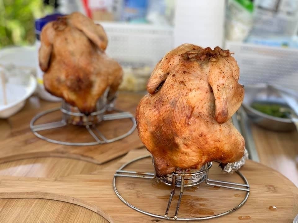 ↑鳥の丸焼き『ビア缶チキン』
