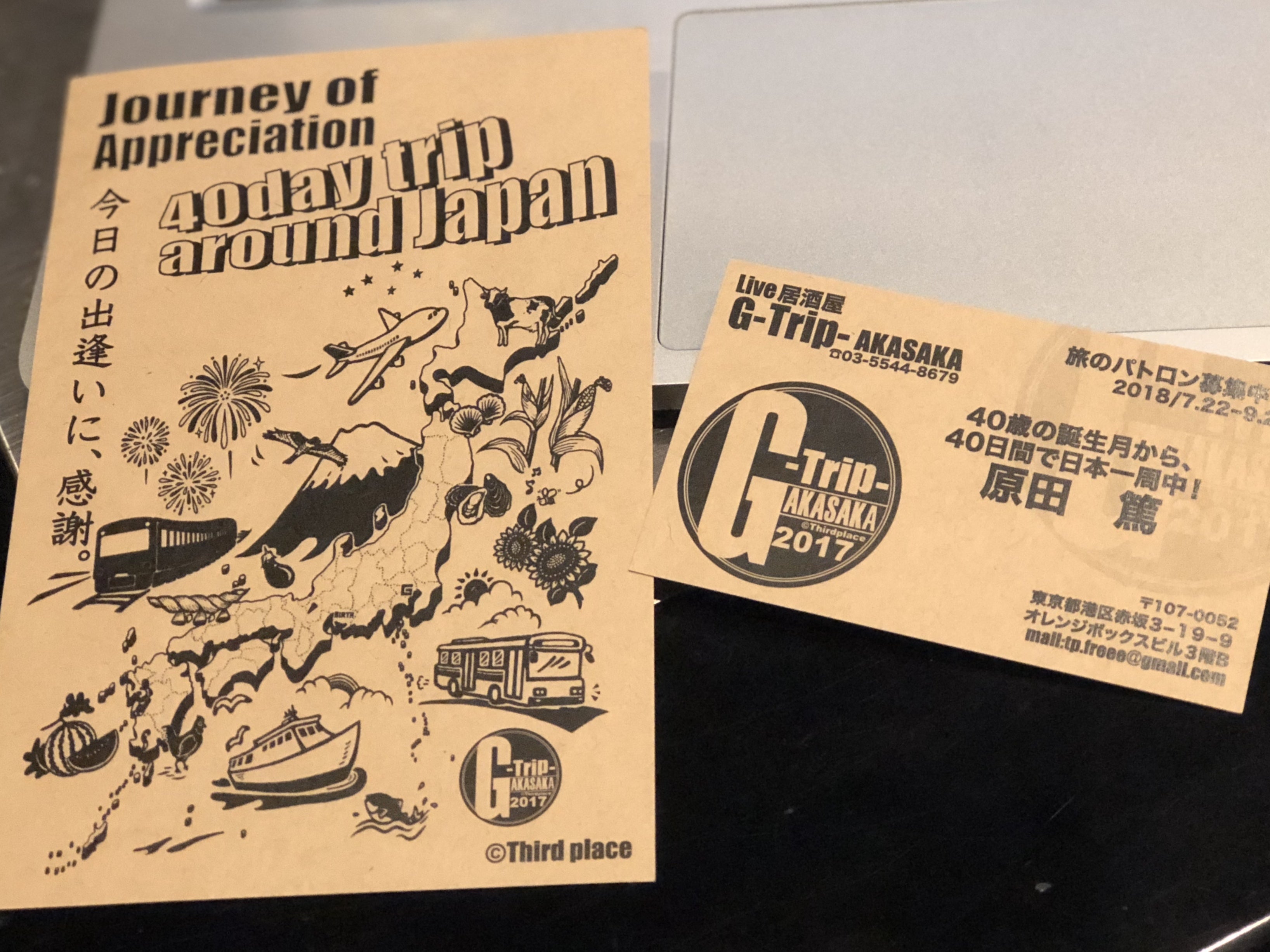 前回の旅でもオリジナルポストカード、旅の名刺、旅のチラシを作らせて頂き、