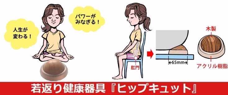 3年前、若返り健康器具『ヒップキュット』を開発し世に出しました。女性のヒップアップニーズに着目し考案したものです。当初は、若い女性からの購入ばかりでしたが、次第に高齢者の注文がグイグイと伸びて来ました。購入された方がご両親に勧めたからです。今や『ヒップキュット』 は、世代を超えて広がっています。