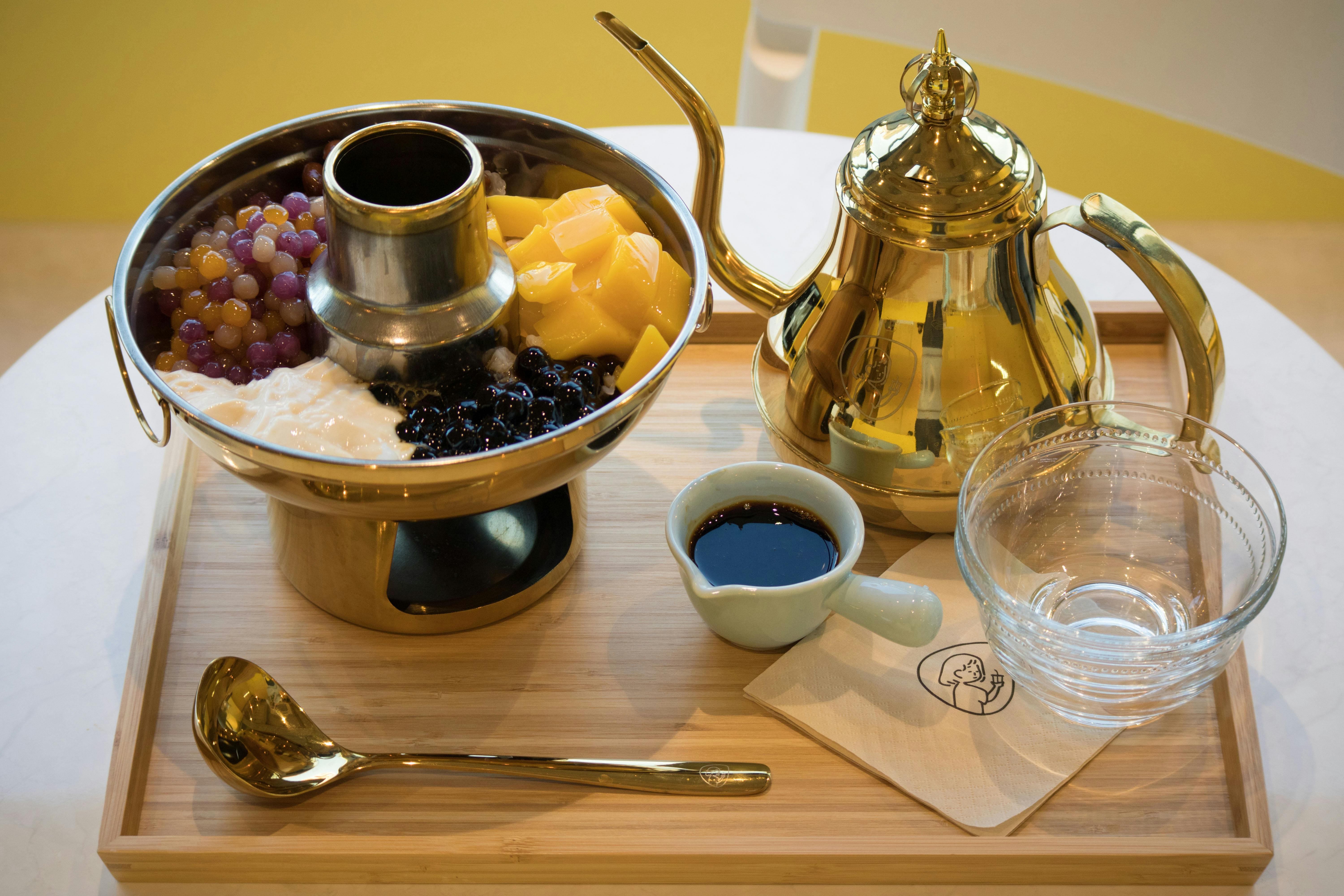 自家製豆花を始めタピオカや芋圓など中華を代表するデザート5種類を楽しめます。 直径20cmあるスイーツ火鍋は、二人でシェアするのにピッタリなサイズ。 恋人やお友達と、楽しいひとときを過ごせる一品。 美味しいものを食べることは、当たり前の時代。 美味しい以上、体に優しい、そしてどうせ食べるなら、楽しく食べてほしいという思いで作り上げた一品。 ベースには美容やダイエットにも効果抜群のココナッツミルク。