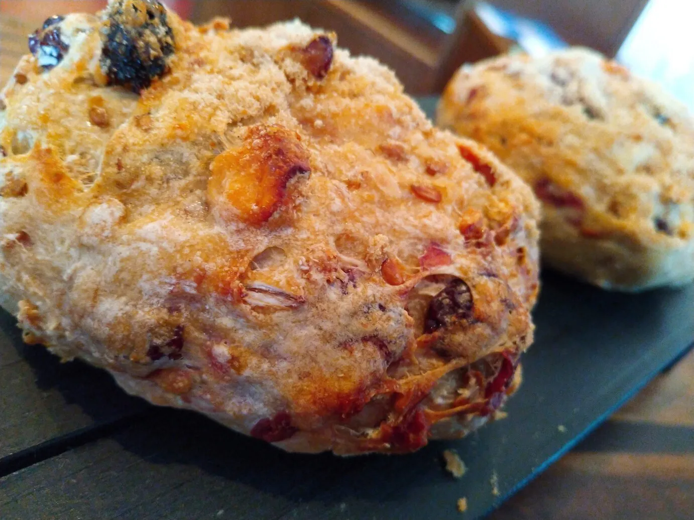 (KURATA PEPPERさんの完熟胡椒(上)とワインと相性バッチリの完熟胡椒とオリーブパン(下))