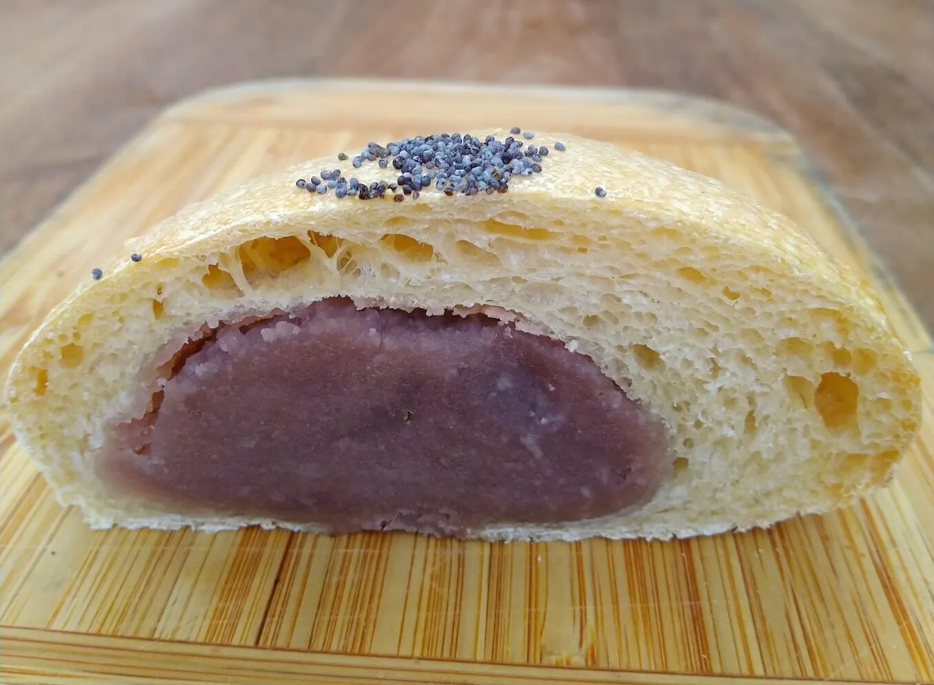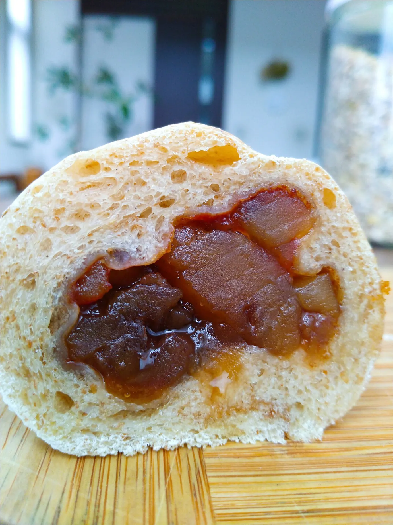 (イタリア産マロングラッセを使ったマロンパンの断面)