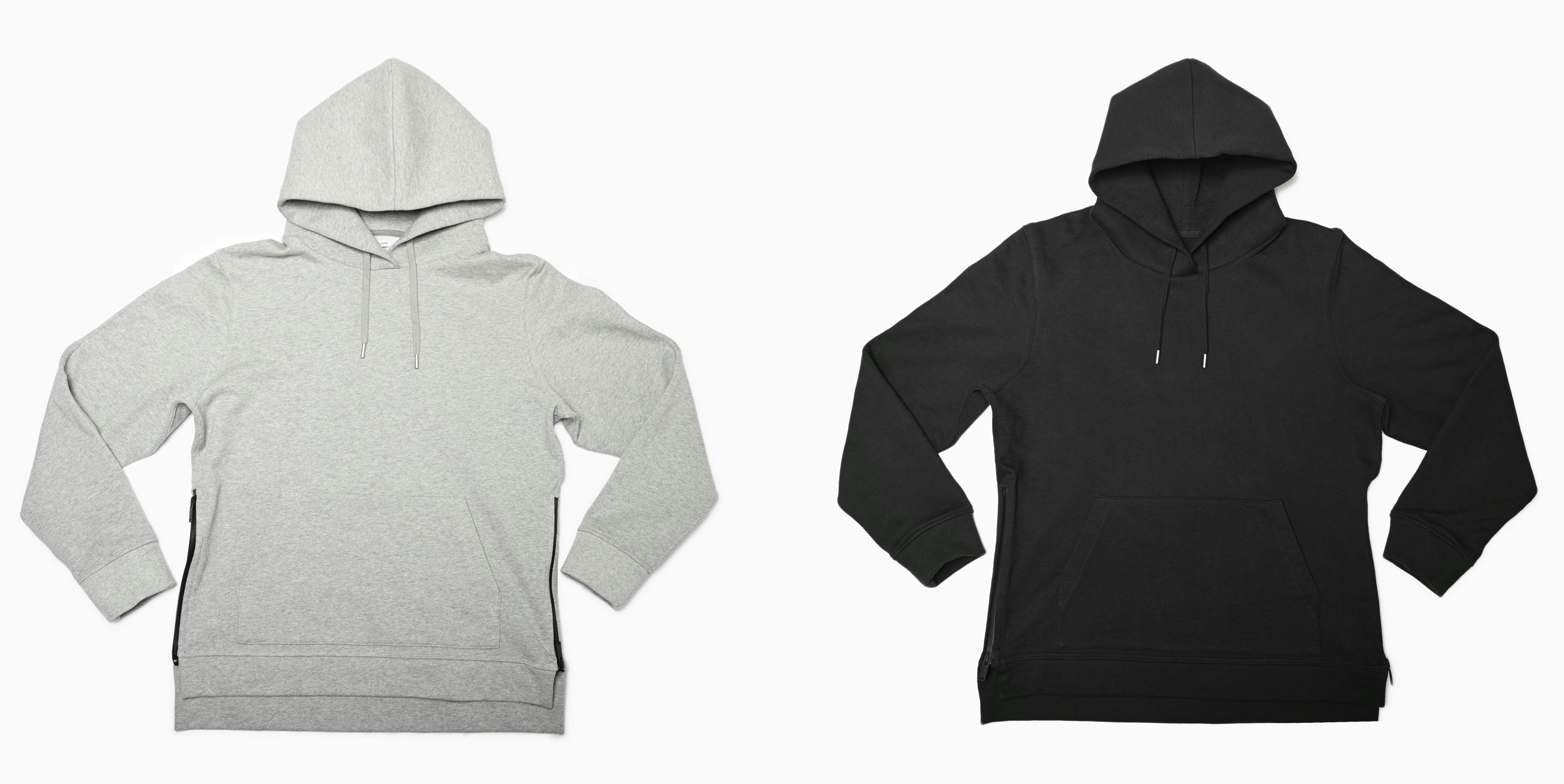 サイドZIPプルオーバーパーカー(左)杢グレー、(右)ブラック