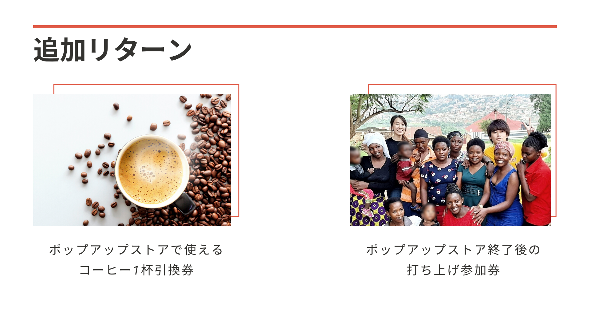 リターンとして、当日使えるコーヒー1杯無料券、イベント後の打ち上げ参加券を追加いたしました。こちらもぜひチェックしてみてください!