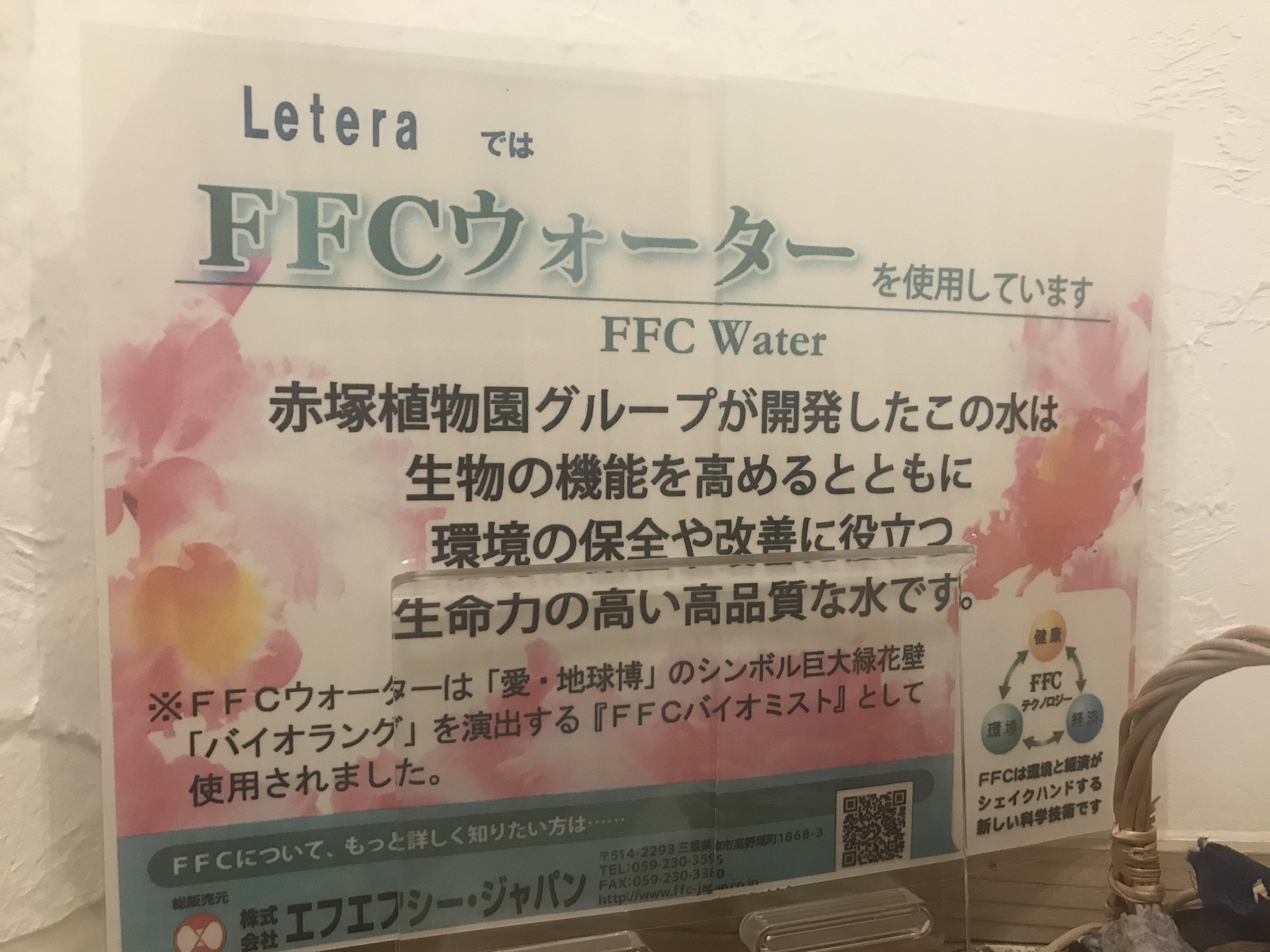 レテラでは厨房のみならず、フロア全体がFFCの水です。