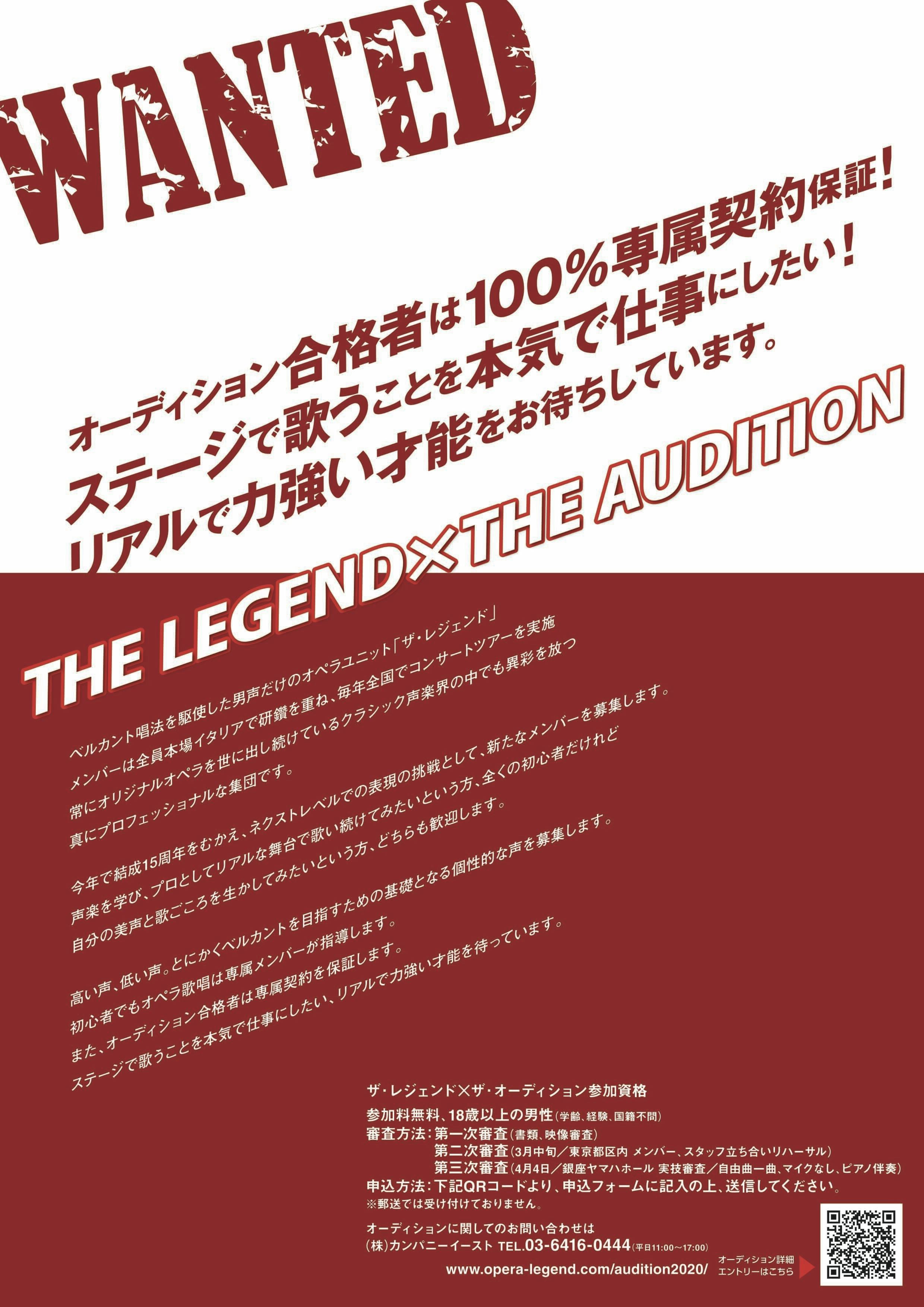 今回オーディションの応募者も22歳から74歳までの幅広い歌手たちが、一緒にTHE LEGENDの音楽を作っていきたい、と自分の人生をかけて申し込んでくれています。